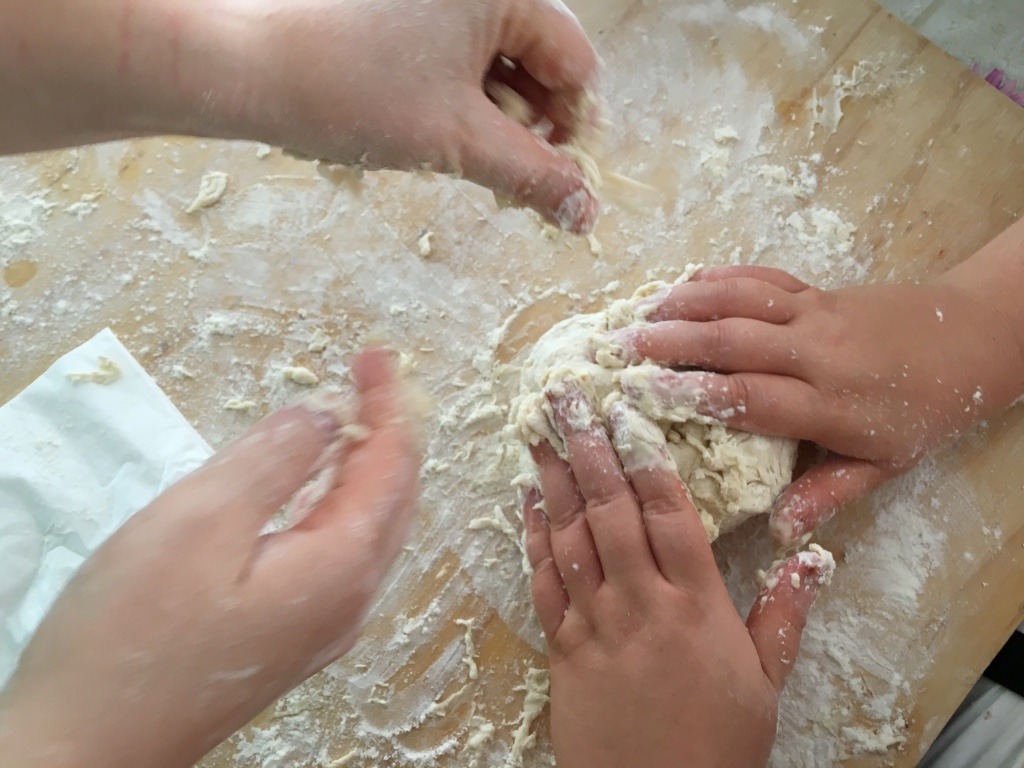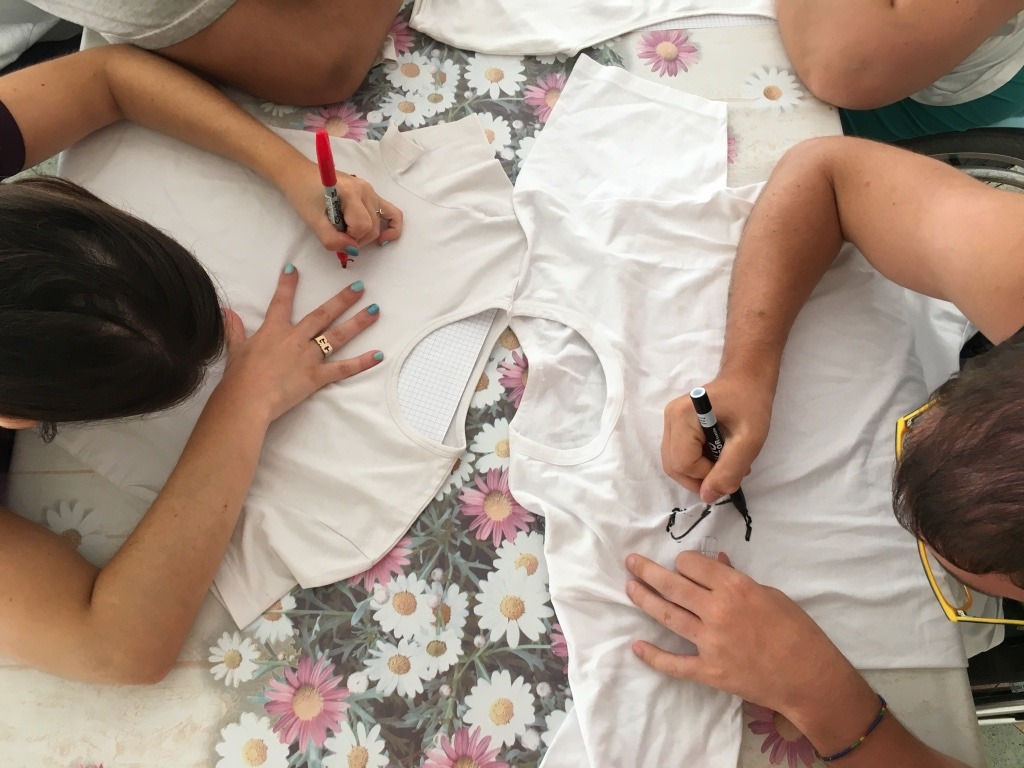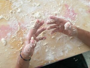 Ci siamo svegliati alle 7:50, poi abbiamo fatto colazione verso le 8:30 e abbiamo fatto l'impasto della pizza. Poi abbiamo colorato la maglietta bianca che avevamo portato da casa.