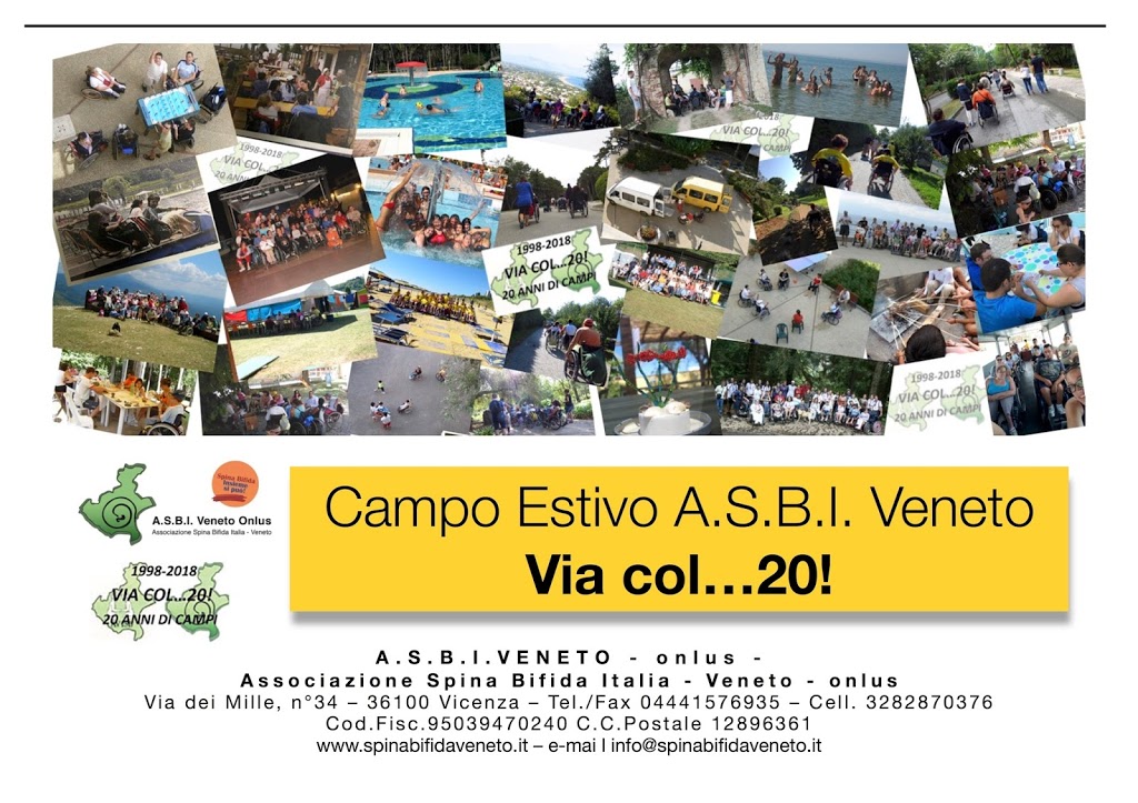 A.S.B.I. Veneto Odv Associazione Spina Bifida Italia – Veneto Menu HOME SPINA BIFIDA CHI SIAMO La Storia Il Direttivo Lo Statuto Siti Amici NEWS PROGETTI / ATTIVITÀ Campi Estivi Feste e Gite Per non mollare la PRESA attacchiamo la SPINA Stand Informativi Spazio Consulenza BLOG SOSTIENICI DIVENTA VOLONTARIO 5 x 1000 CONTATTI CONTATTI Privacy Policy…